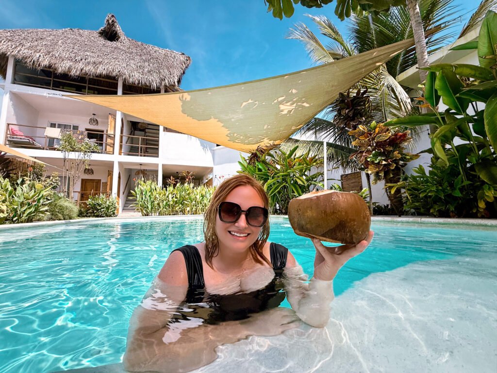 The hotels in El Paredón are so stylish! Many of the hotels reminded me of the villas and hotels that I saw in Bali, Indonesia. I have a few hotel options listed below and most importantly, I recommend booking a hotel with a pool and air conditioning. You will need both in El Paredon because it gets so hot and humid in this part of Guatemala!